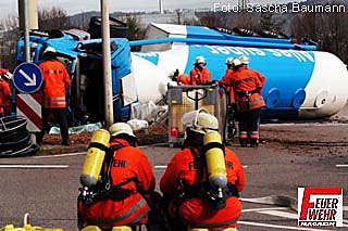 ESSLINGEN - Ein mit Kraftstoff beladener Tanklastzug ist am Dienstagmorgen auf der Bundesstraße 10 bei Esslingen verunglückt. Augenzeugen berichteten, der Gefahrgut-Lkw sei viel zu schnell in die Ausfahrt Oberesslingen gefahren und dabei umgestürzt. Bei dem Unglück riss eine Tankkammer des Benzin-Transporters auf. Mehrere hundert Liter der brennbaren Flüssigkeit liefen aus. Gegen 9.30 Uhr wurde der Esslinger Feuerwehrleitstelle der Unfall gemeldet. Sie alarmierte sofort den Gefahrgutzug und weitere Kräfte der Freiwilligen Feuerwehren aus Esslingen. Der 59-jährige Fahrer des Unglücks-Lkw musste leicht verletzt in ein Krankenhaus eingeliefert werden. Die Feuerwehr war den ganzen Vormittag damit beschäftigt, den Kraftstoff aus den Tankkammern des Lastzuges in andere Behälter und Fahrzeuge umzupumpen.