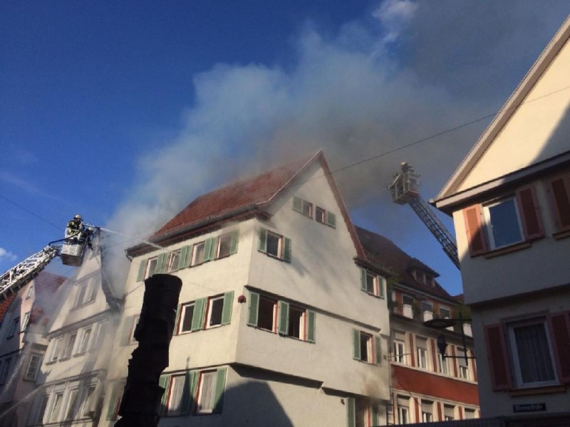 Esslingen - Kriminalermittler der Polizei sollen am heutigen Donnerstag nach der Ursache des Großbrands in der Esslinger Innenstadt forschen. Das Feuer war gestern gegen 18 Uhr an einer Klimaanlage ausgebrochen, die an einer Außenwand befestigt war, wie ein Polizeisprecher am Morgen sagte. Wie genau es zu dem Brand kam, war zunächst unklar. Die Flammen zwischen zwei nah beieinanderstehenden Fachwerkhäusern hatten rasch auf deren Dachstühle übergegriffen. Zur Höhe des Sachschadens gab es zunächst keine Informationen.