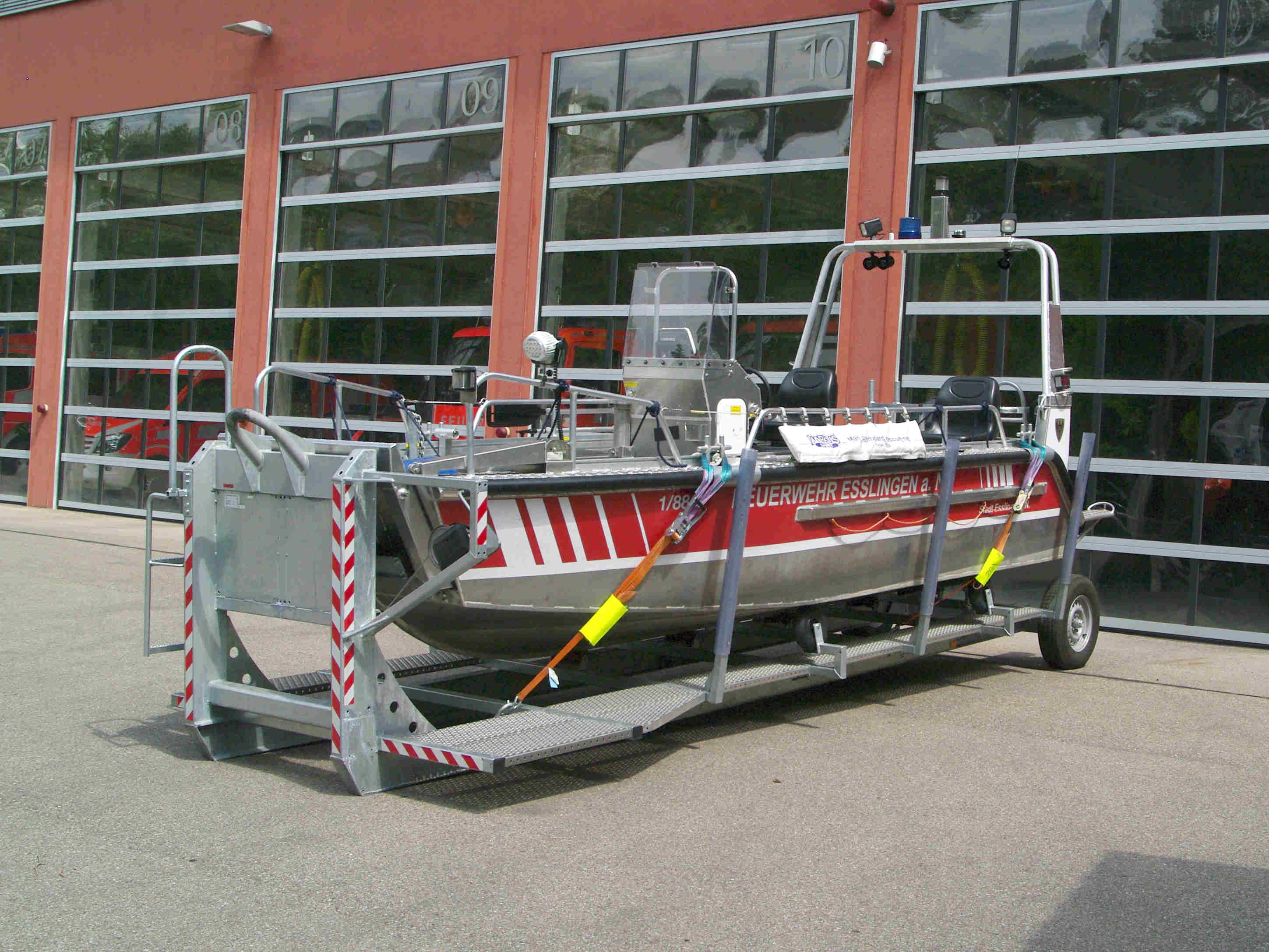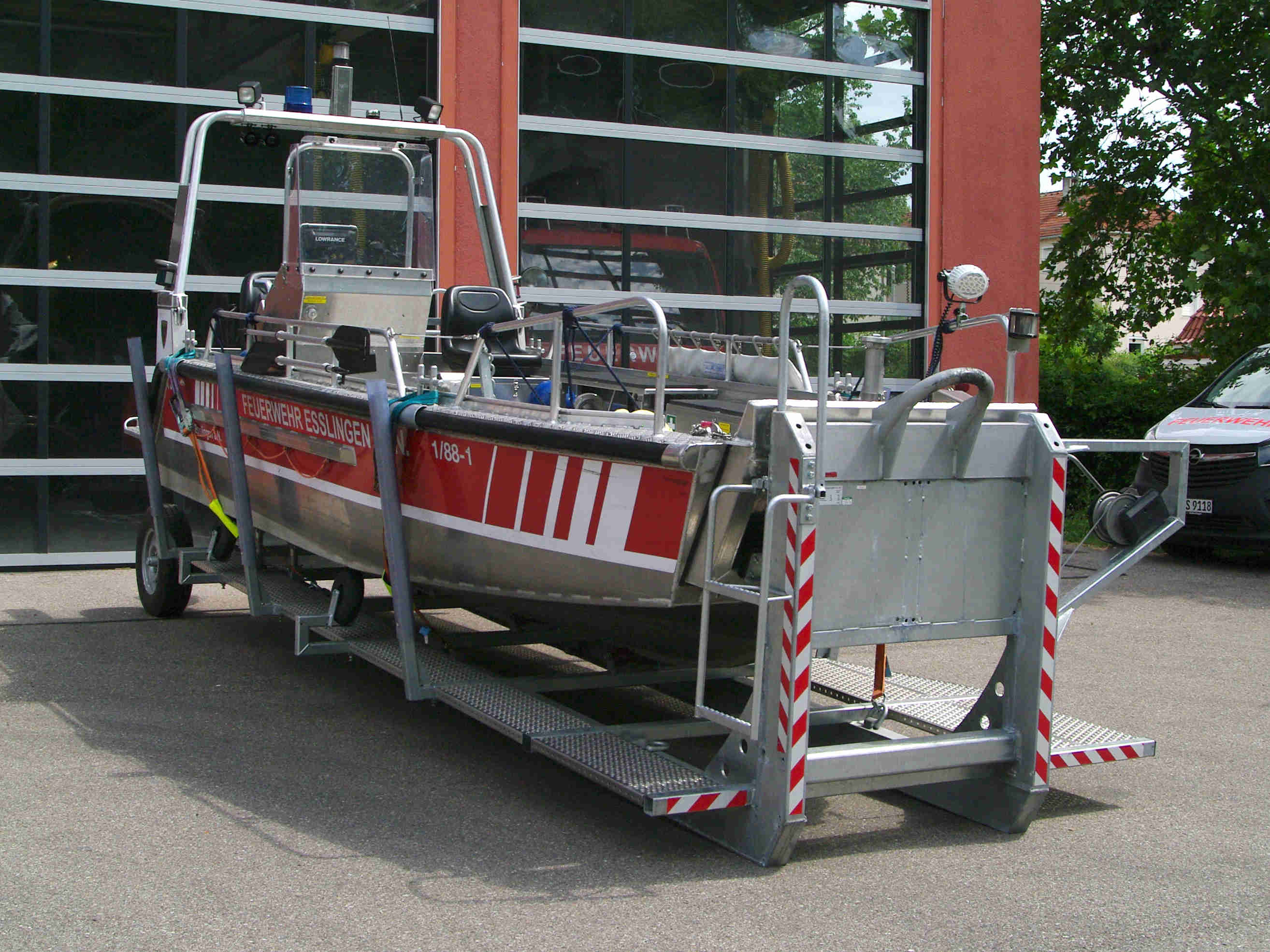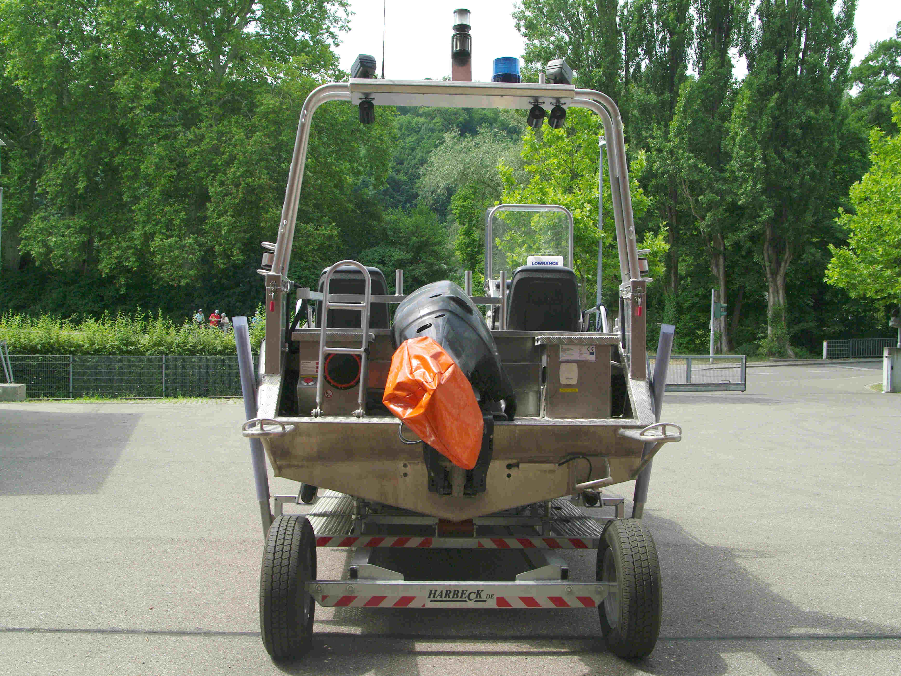 Der AB-Boot dient zum Transport des Rettungsboot, an extra gedachten Slip-Stellen kann somit das Boot direkt zu Wasser gelassen werden. |