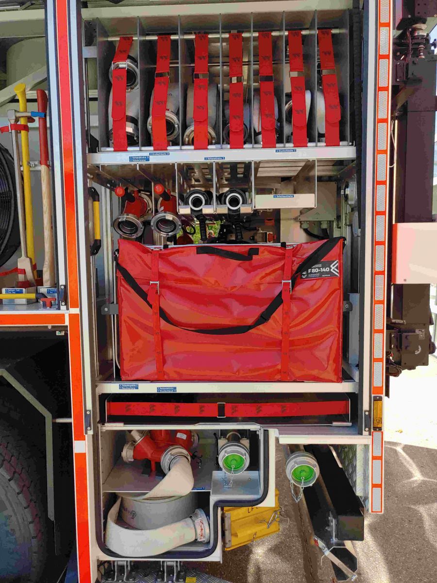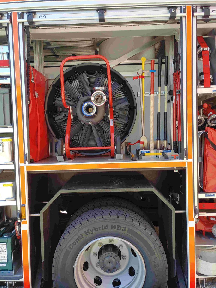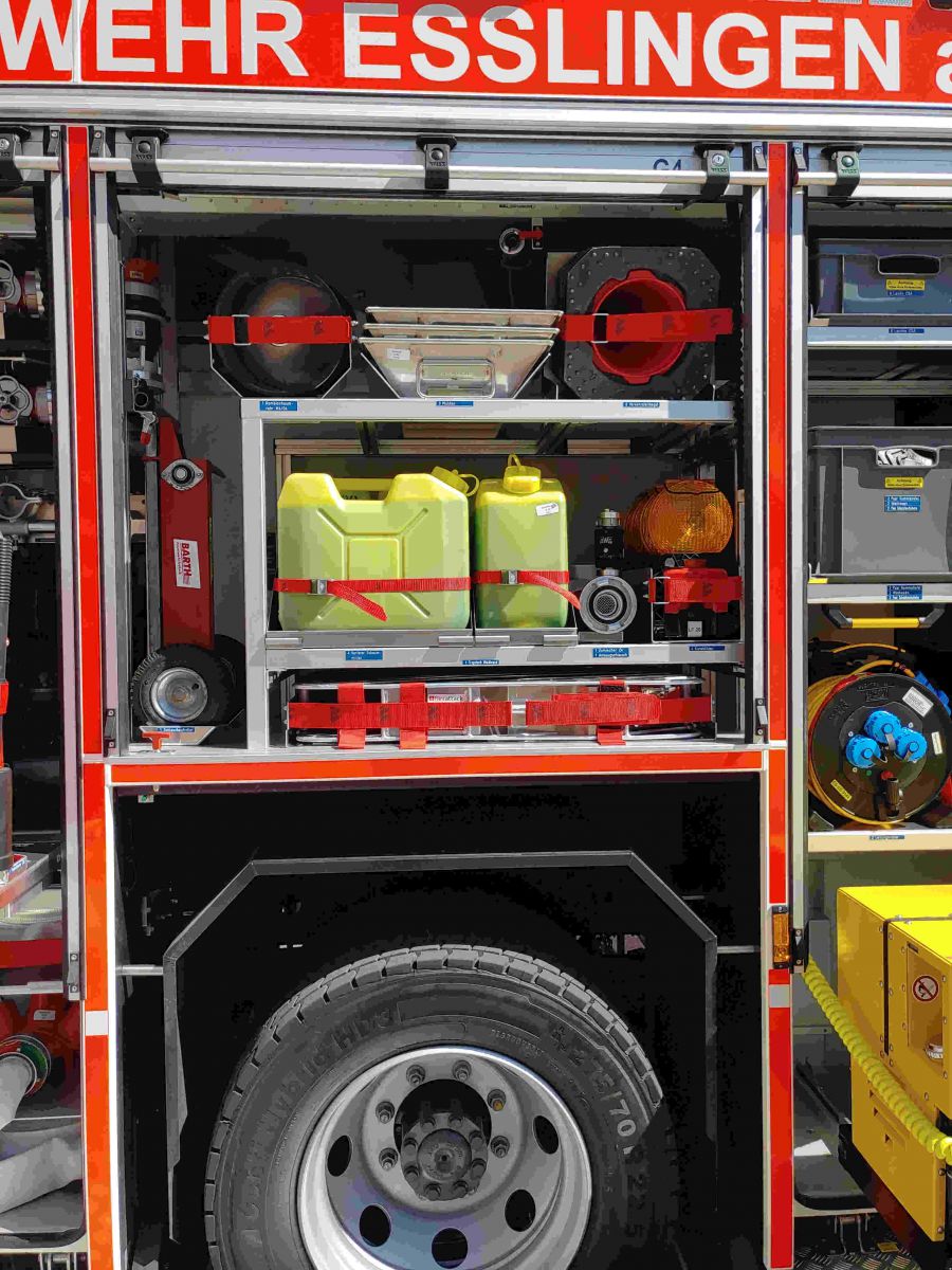 FPN 10-3000 (fest verbaute Feuerlöschkreiselpumpe mit 3000l/min bei 10bar) 2400 Liter Wassertank Wärmebildkamera (FLIR K2) Schornsteinfegerwerkzeug Schlauchpaket Wasserlüfter elektrisch betriebenen Lüfter Säbelsäge (Akku betrieben) Akkuschrauber Akkuscheinwerfer (identisches Akkusystem zu Säge und Schrauber) 2x mobiler Rauchverschluss (unterschiedliche Größen) Notfallrucksack Verbandsmaterialkoffer Waldbrandtragekorb mit D-Schläuchen und Armaturen Schlauchtragekörbe C Hohlstrahlrohre Atemschutzüberwachung Verkehrsunfallkiste Sperrwerkzeugsatz manueller abklappbarer LED-Lichtmast am Heck Schleuderketten |