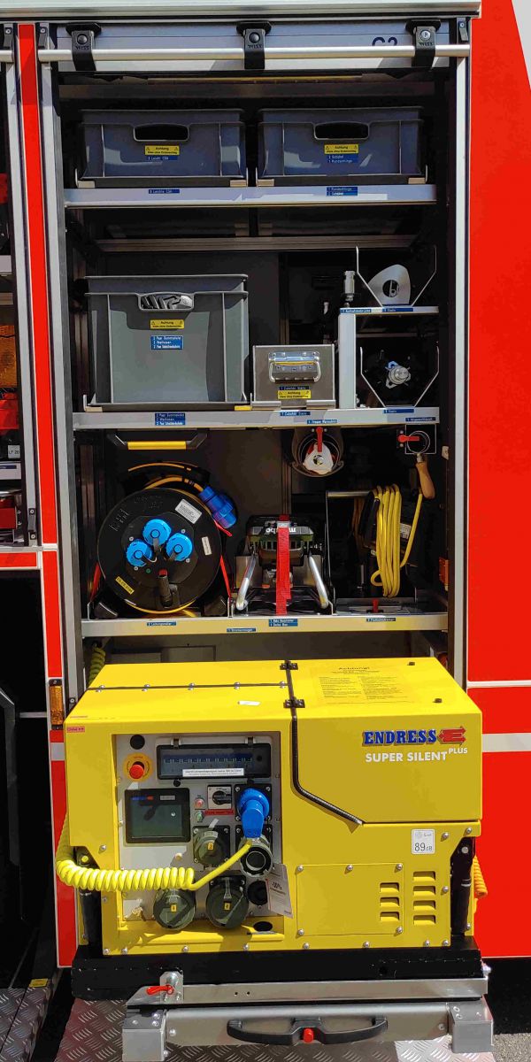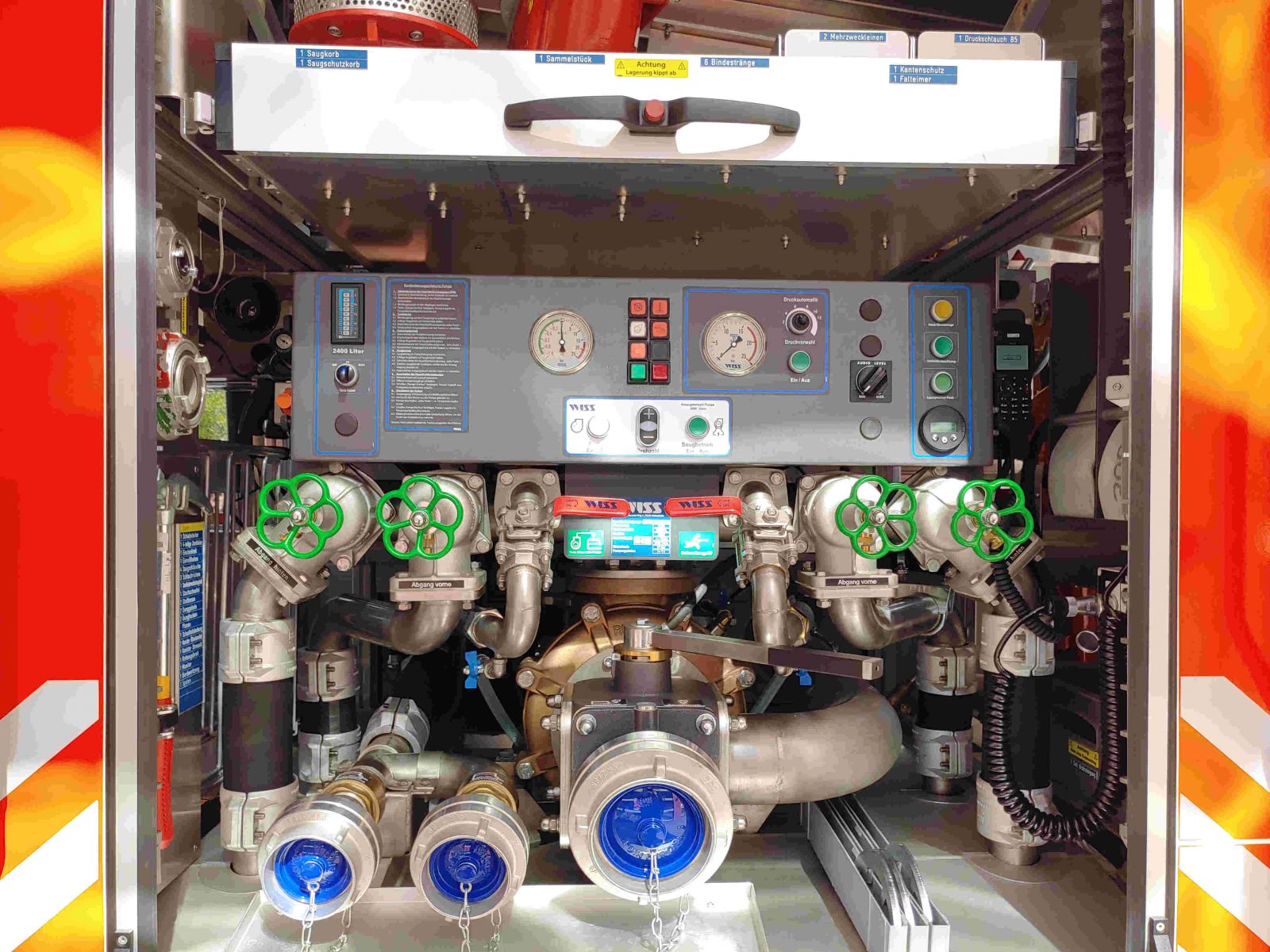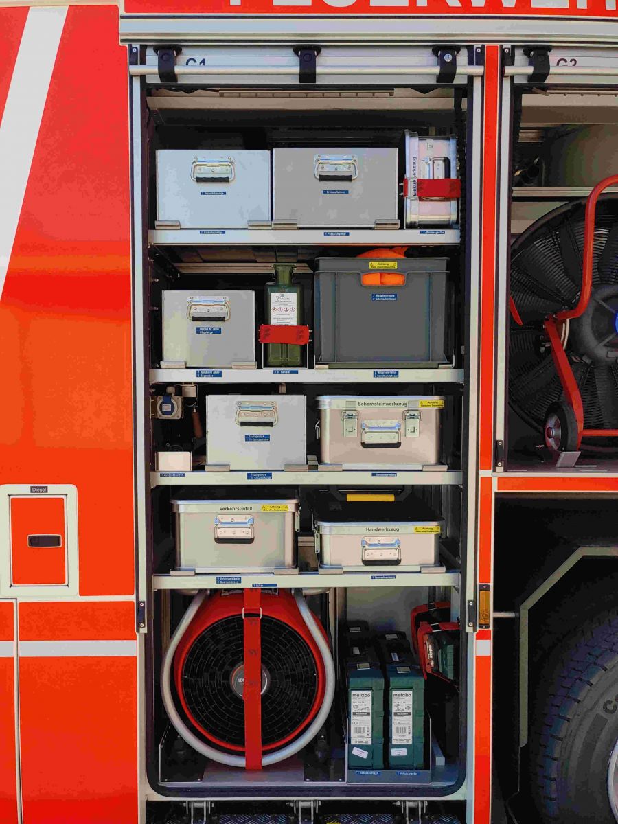 FPN 10-3000 (fest verbaute Feuerlöschkreiselpumpe mit 3000l/min bei 10bar) 2400 Liter Wassertank Wärmebildkamera (FLIR K2) Schornsteinfegerwerkzeug Schlauchpaket Wasserlüfter elektrisch betriebenen Lüfter Säbelsäge (Akku betrieben) Akkuschrauber Akkuscheinwerfer (identisches Akkusystem zu Säge und Schrauber) 2x mobiler Rauchverschluss (unterschiedliche Größen) Notfallrucksack Verbandsmaterialkoffer Waldbrandtragekorb mit D-Schläuchen und Armaturen Schlauchtragekörbe C Hohlstrahlrohre Atemschutzüberwachung Verkehrsunfallkiste Sperrwerkzeugsatz manueller abklappbarer LED-Lichtmast am Heck Schleuderketten |