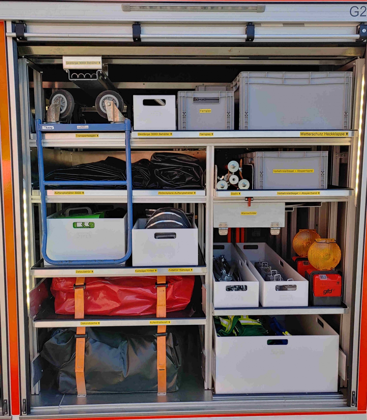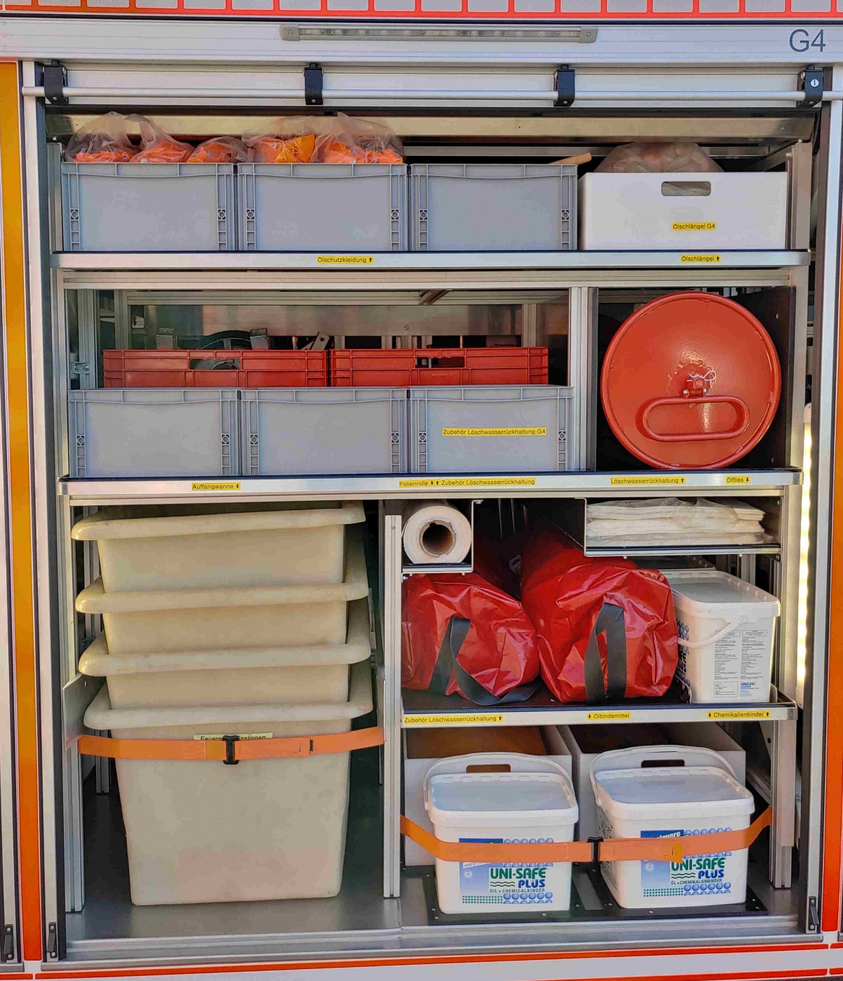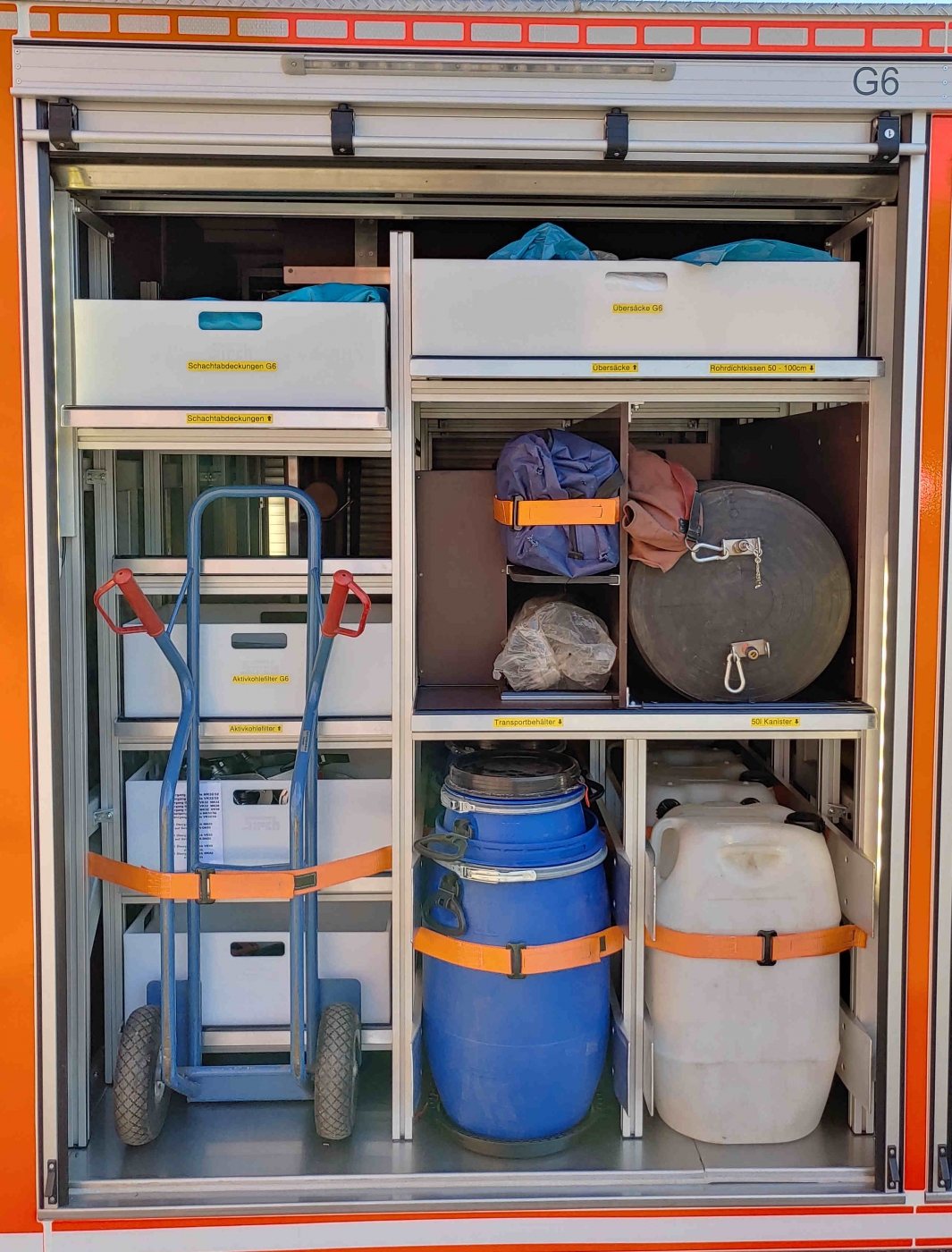 Der AB-Gefahrgut dient als "Werkzeugkiste" im Gefahrgut-Einsatz. Auf ihm sind die persönliche Schutzausrüstung, Pumpen, Armaturen, Schläuche, Geräte zum Abdichten von Leckagen und vieles mehr verlastet. Weitere Infos folgen... |