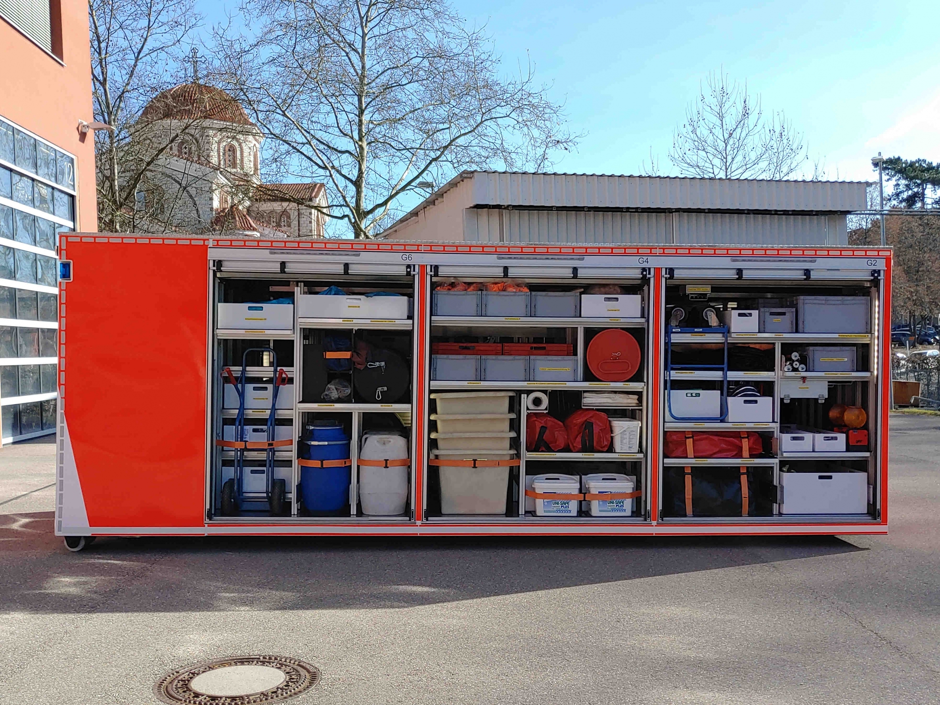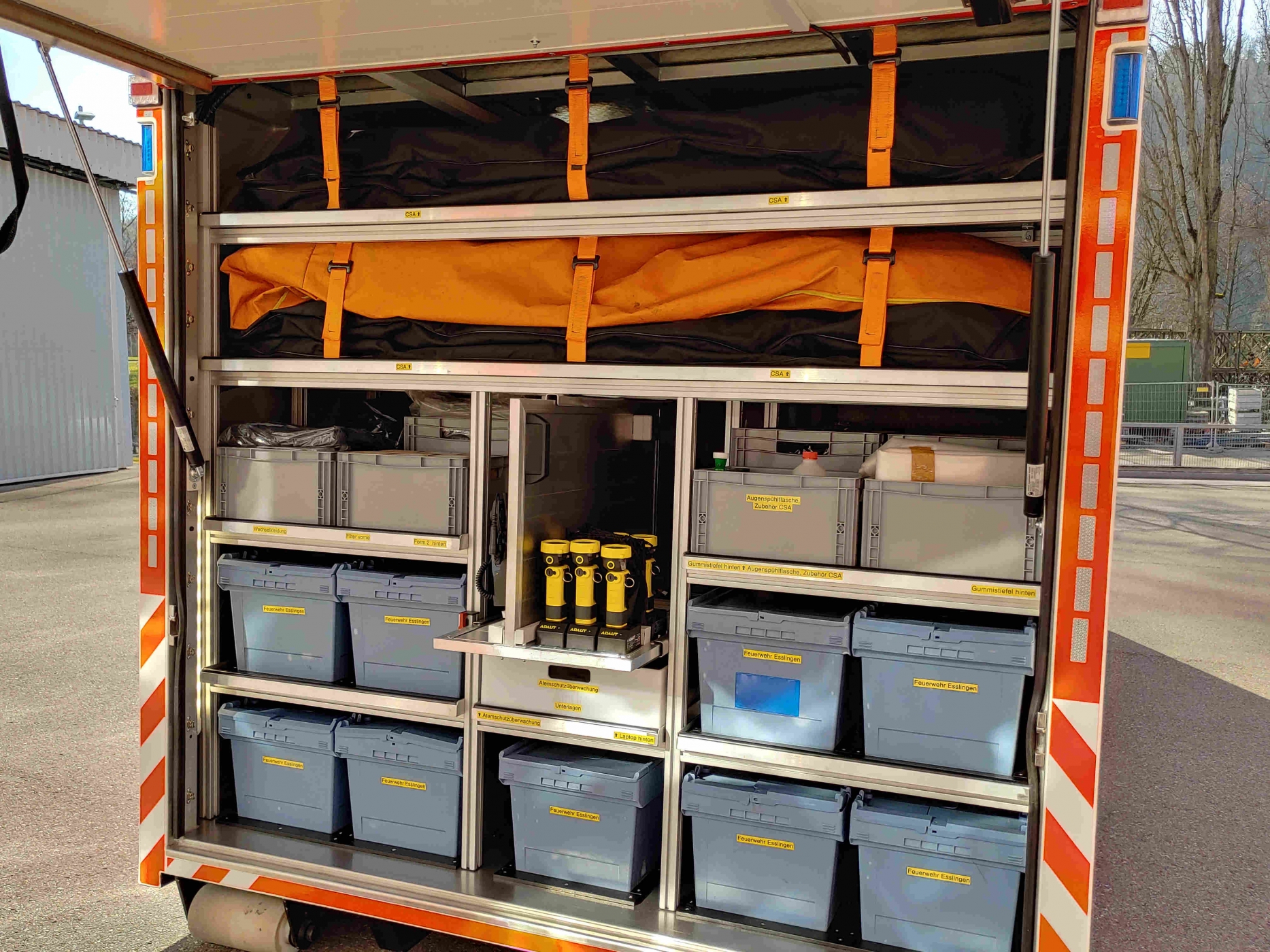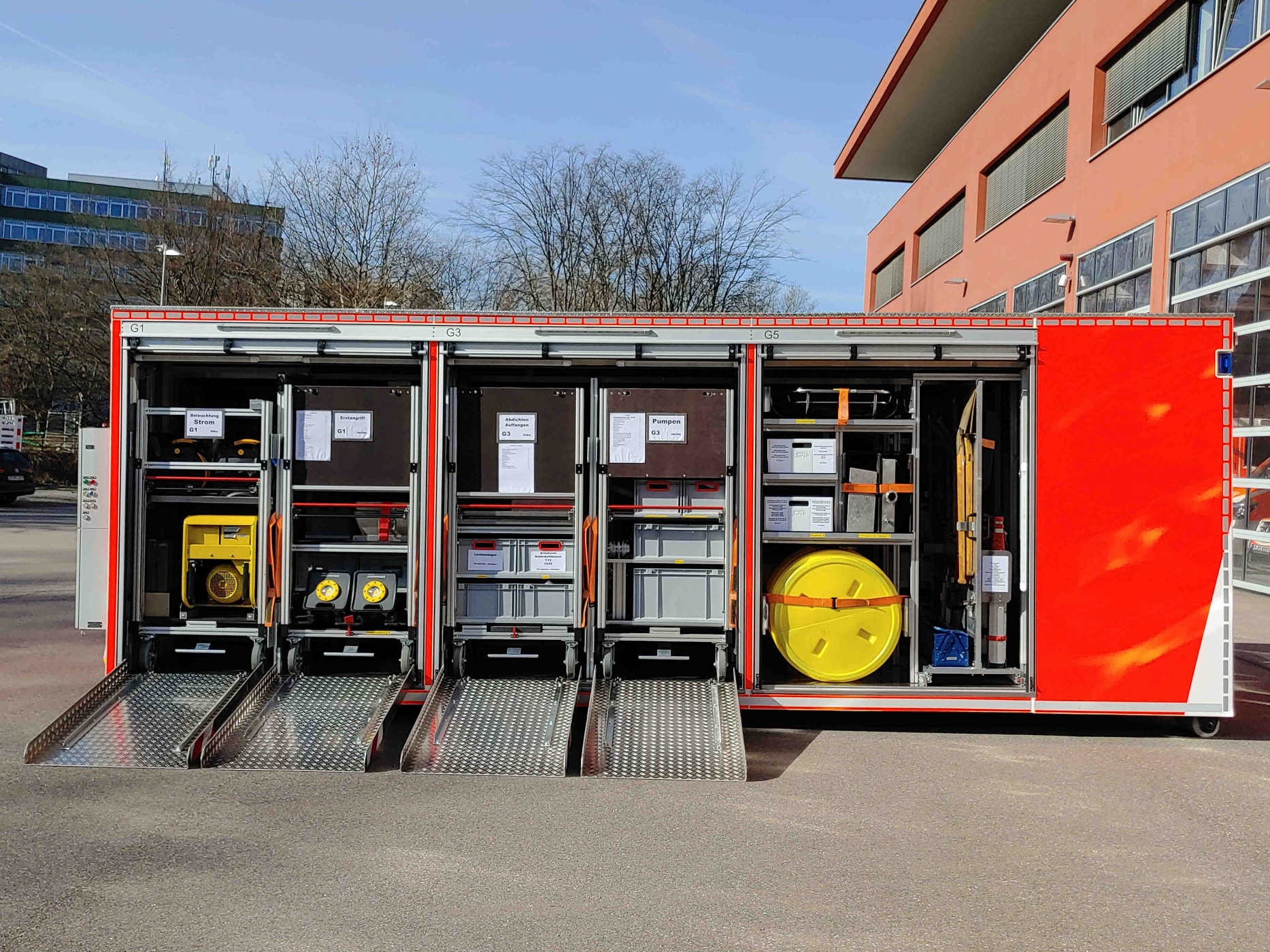 Der AB-Gefahrgut dient als "Werkzeugkiste" im Gefahrgut-Einsatz. Auf ihm sind die persönliche Schutzausrüstung, Pumpen, Armaturen, Schläuche, Geräte zum Abdichten von Leckagen und vieles mehr verlastet. Weitere Infos folgen... |